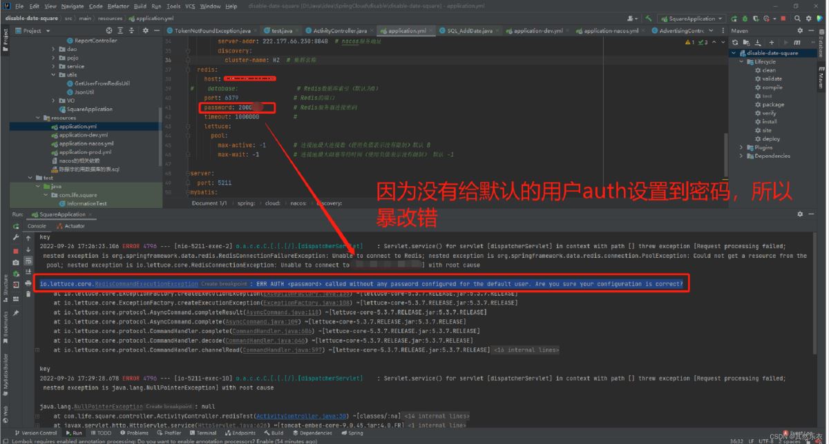 解决方式1:在redis.conf配置文件中requirepass后空一一格,然后加上密码