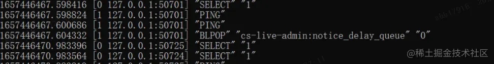 1.打开redis监控,启动服务,发现redis首先执行了blpop命令,阻塞等待{cl-live-admin:notice_delay_queue} 队列消息