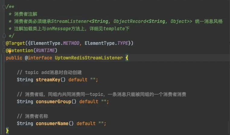 这里简单提一下思路,本质上是提供一个管理消息的一个小功能,定义一个注解用于创建stream管道