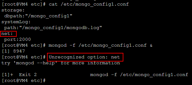 一开始,配置之后,启动服务的时候,老是提示:“unrecognized option: systemLog ” (如下图)