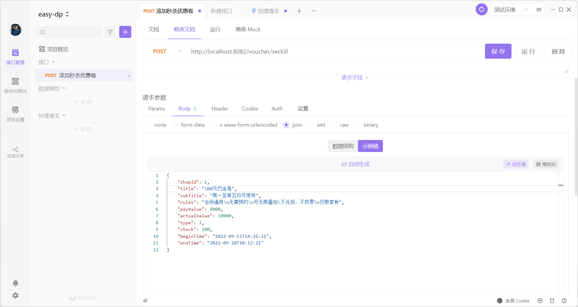 SeckillVoucher seckillVoucher = new SeckillVoucher();