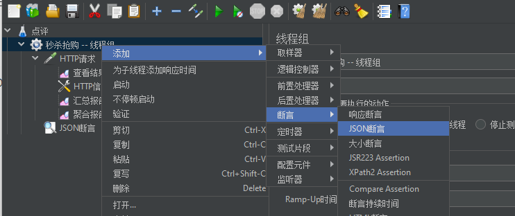 查看结果树、HTTP信息请求头、汇总报告、聚合报告等均在http请求右击添加即可