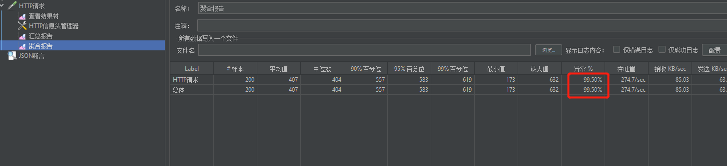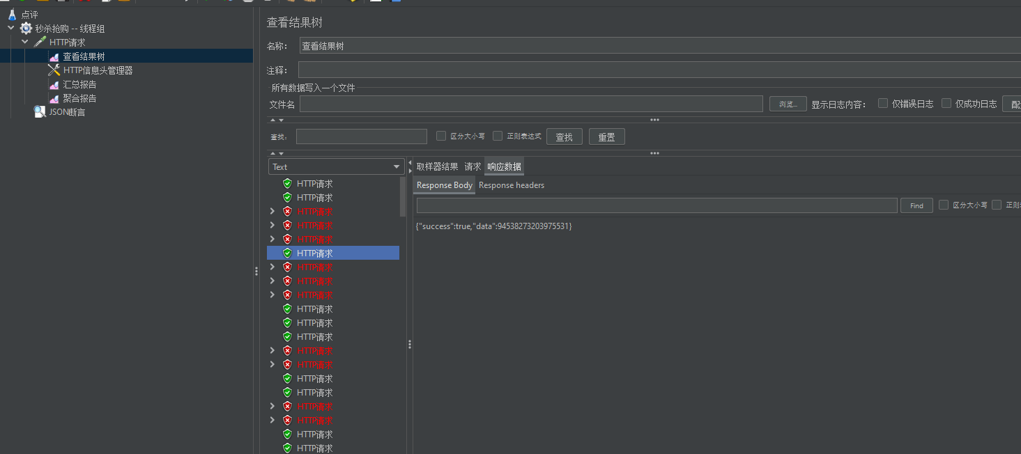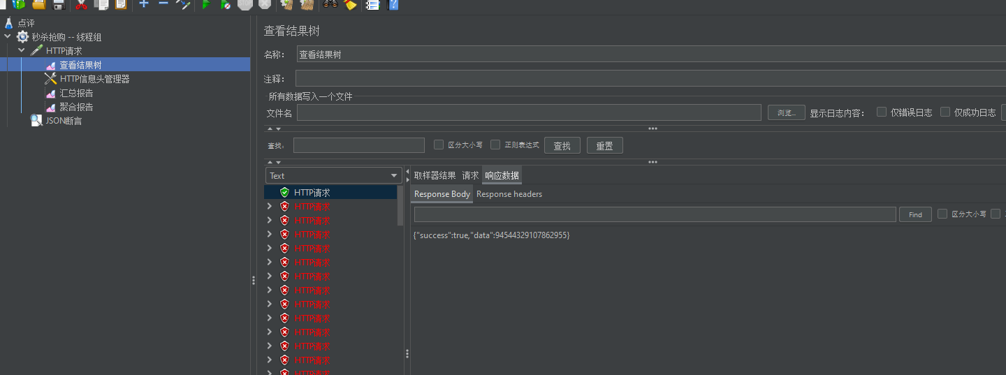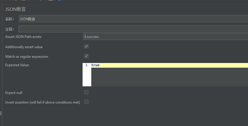 添加JSON断言,我们认为返回结果为false的就是请求失败
