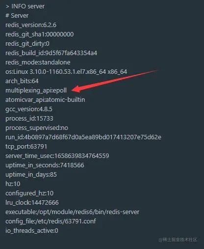 也可以通过命令INFO server来查看当前使用的是哪个多路复用库:
