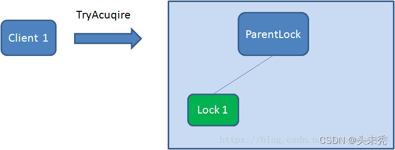 首先,在Zookeeper当中创建一个持久节点ParentLock。当第一个客户端想要获得锁时,需要在ParentLock这个节点下面创建一个临时顺序节点 Lock1。