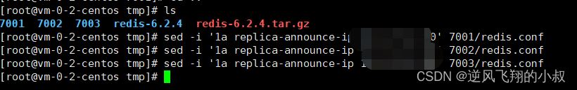sed -i ‘1a replica-announce-ip 当前IP’ 7003/redis.conf