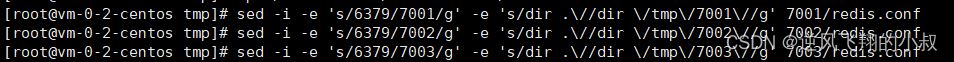 sed -i -e ‘s/6379/7002/g’ -e ‘s/dir .\//dir \/tmp\/7002\//g’ 7002/redis.conf