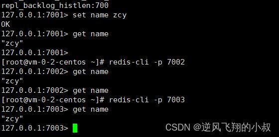 在7001上面连接客户端并设置一个key,然后在7002上面检查