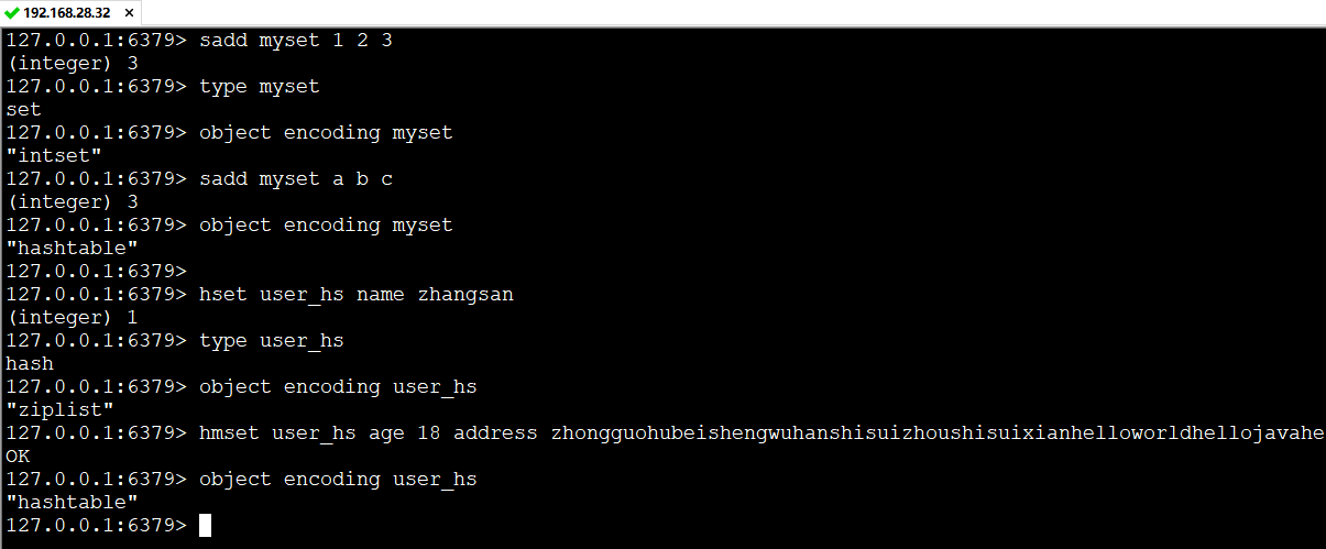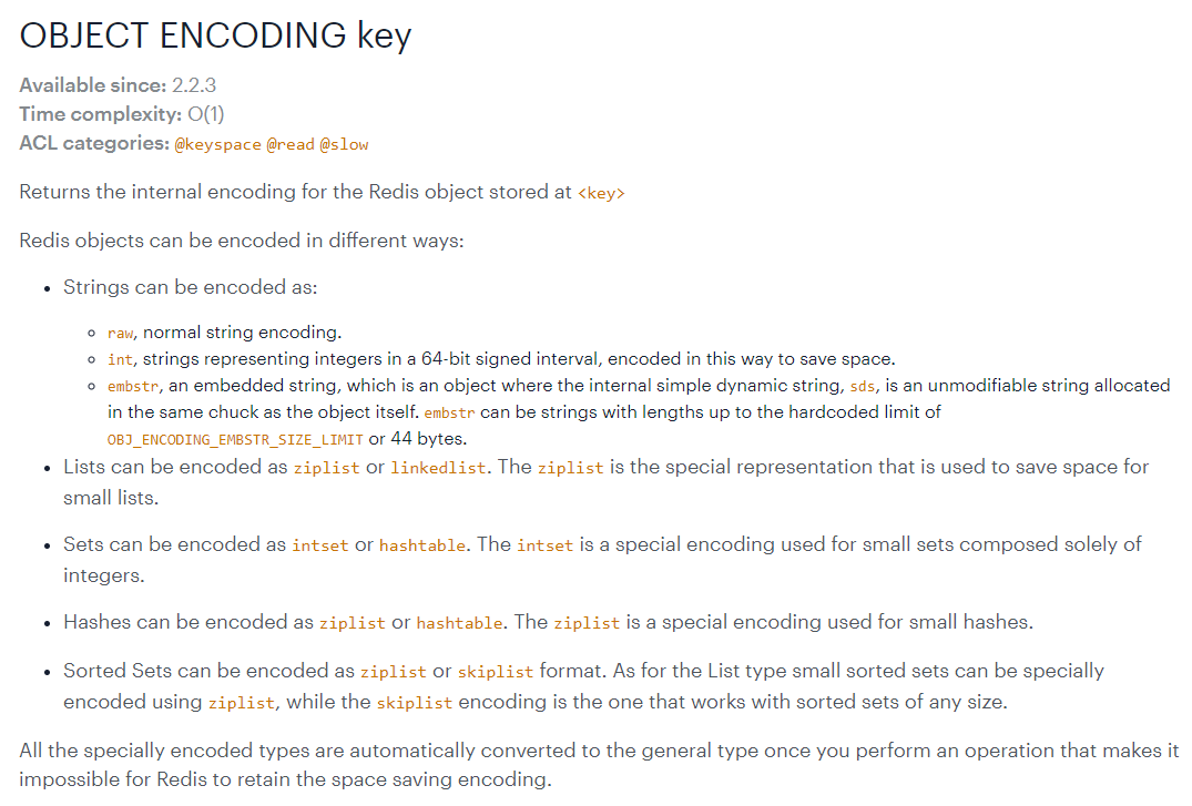 不同的数据类型的实现方式是不一样的,可以通过object encoding命令查看底层真正的数据存储结构