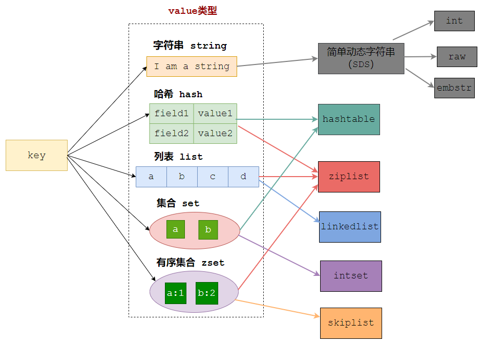 Redis是键值对形式的数据库,key可以是任意值(PS:最终都会转成string),value有多种数据类型