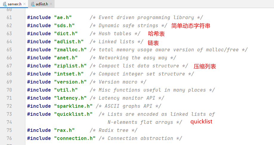 同一种类型在不同的条件下所采用的数据结构也不一样,例如: