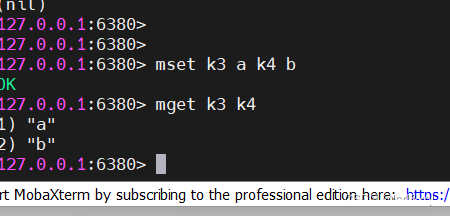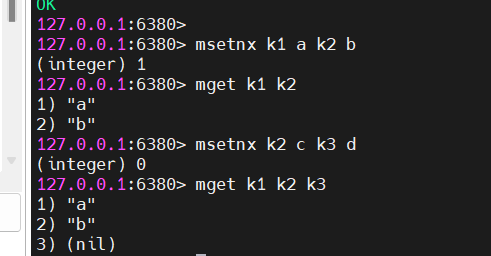 msetnx (设置多个key对应的value保证原子性)下面的图中msetnx 在设置k3的时候失败了