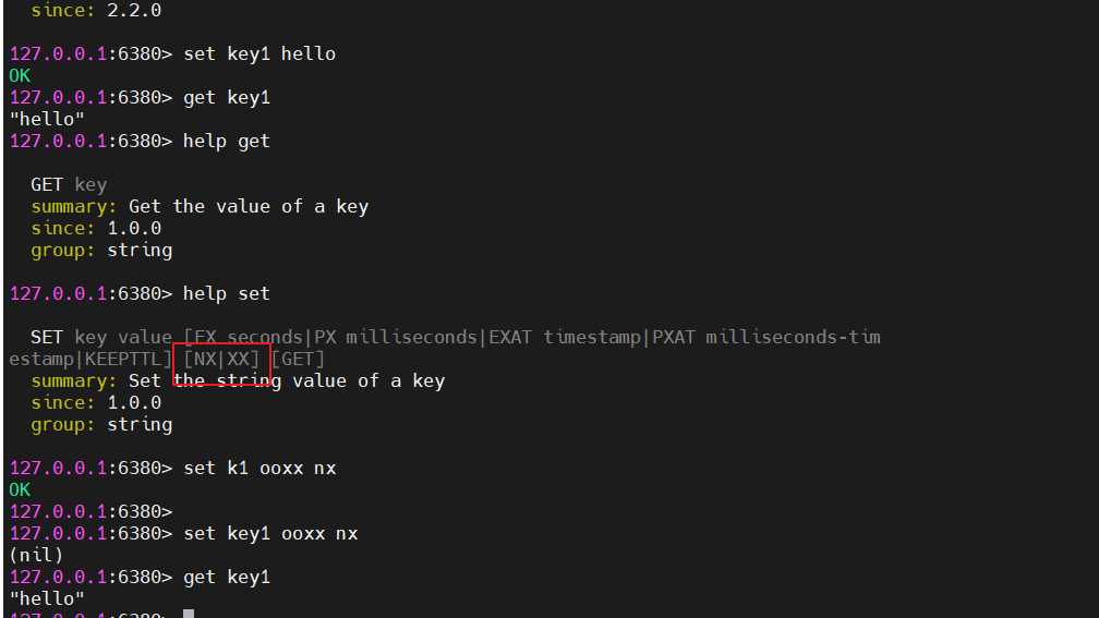 对于如上nx的命令是我当前的key如果没有被设置则把ooxx给设置成功,如果设置的key已经有value了,