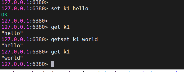 getset命令是将旧的值返回并将新的值给设置进去,(相对于get 和set单独执行的话,要发两个单独