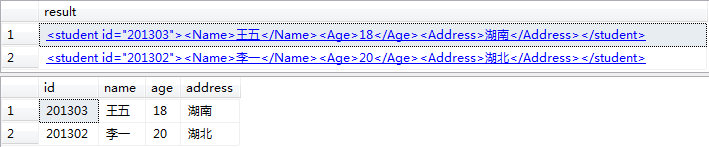 –结果: <row id=”10″ name=”小李” teacherId=”1″ teacherName=”王静” />