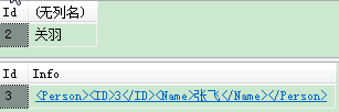 INSERT Person VALUES(2,'<Person><ID>2</ID><Name>关羽</Name></Person>’)