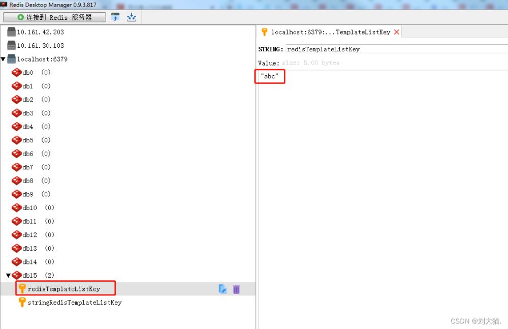 redisTemplate.opsForValue().set(“redisTemplateListKey”,”abc”);