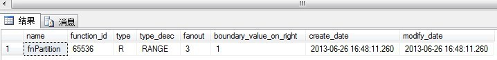 通过系统视图,可以看见这个分区函数已经创建成功。
