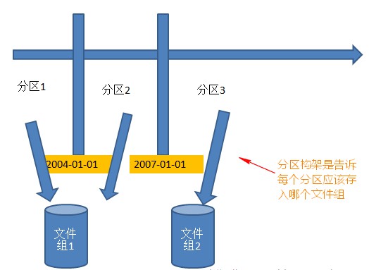 从原型来看,分区构架仅仅是依赖分区函数。分区构架负责分配每个区属于哪个文件组,而分区函数是决定哪条数据属于哪个分区。