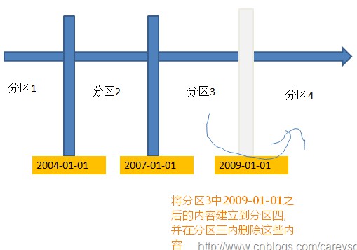 分区表的分割,相当于新建一个分区,将原有的分区需要分割的内容插入新的分区,然后删除老的分区的内容。