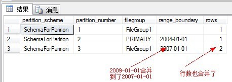 在这里应该注意到一个问题,假设已经合并了分区,那么合并之后,文件是存在分区3的文件组呢,还是分区4的文件组呢?这个取决于我们刚开始时定义的分区函数是left还是right。