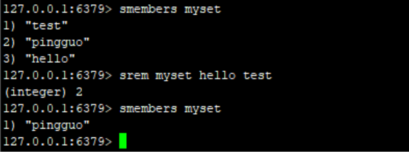 用于移除集合中的一个或多个成员元素,不存在的成员元素会被忽略。