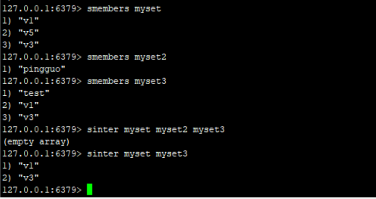 这里当比较3个集合myset myset2 myset3时,myset2里跟其他2个没有任何交集,所以整个结果返回空集。