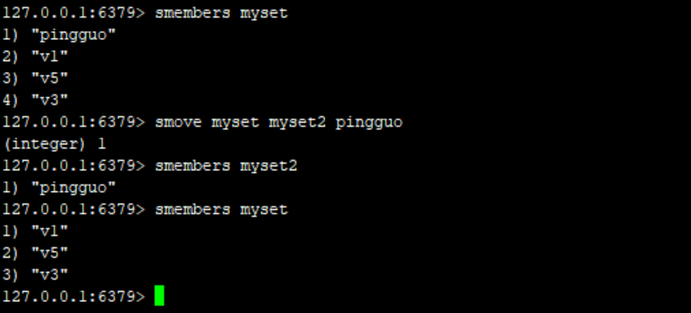 smove source destination member将指定成员 member 元素从 source 集合移动到 destination 集合。