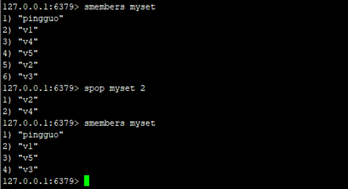 跟上面的srandmember区别开,虽然都是随机,但是这里的spop修改了集合。