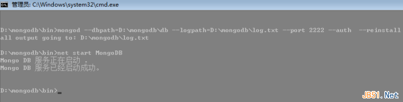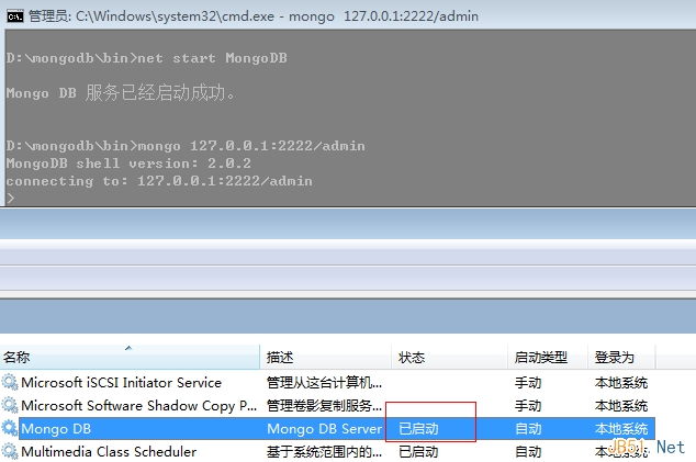 在mongodb里面提供了一个叫做“服务寄宿”的模式,我想如果大家对wcf比较熟悉的话很容易听懂。好了,我们实践一下,这里我开一下D盘里面的mongodb。