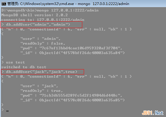 验证的方法,那么该怎么做呢?其实很简单,mongodb提供了addUser方法,还有一个注意点就是如果在admin数据库中添加