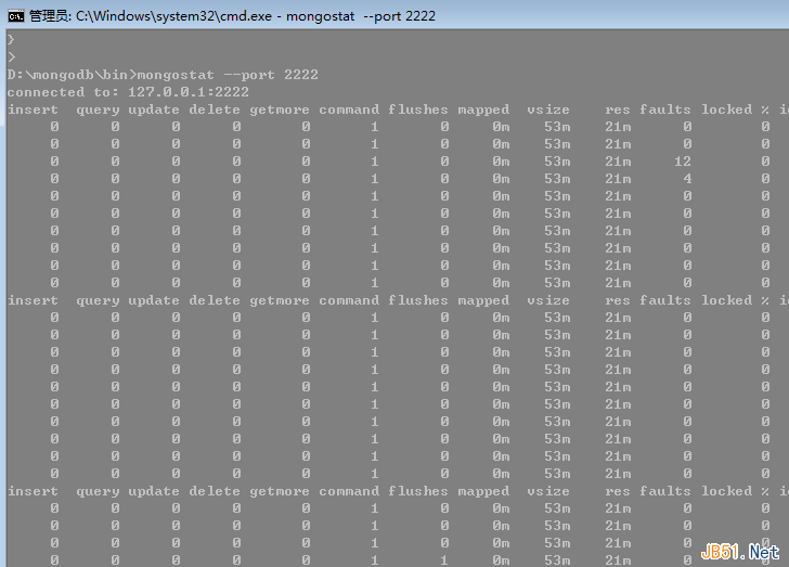 前面那些统计信息再牛X,那也是静态统计,不能让我观看实时数据变化,还好,mongodb里面提供了这里要说的mongodstat