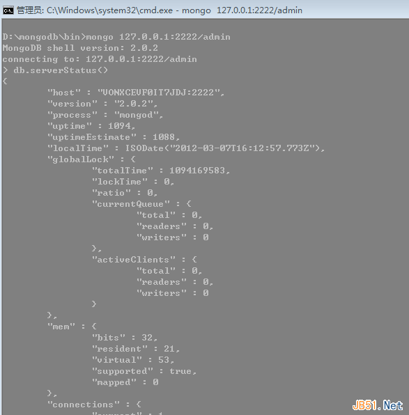 这个函数可以获取到mongodb的服务器统计信息,其中包括 :全局锁,索引,用户操作行为等等这些统计信息,对管理员来说非常