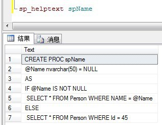7、sp_helptext:显示默认值、未加密的 Transact-SQL 存储过程、用户定义 Transact-SQL 函数、触发器、计算列、CHECK 约束灯等的定义。