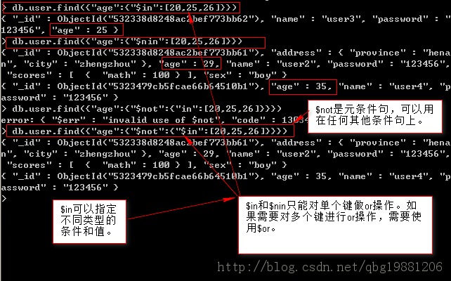 $in用于查询一个键的多个值,$nin将返回与筛选数组中所有条件都不匹配的文档。将$in与$not组合可以实现$nin相同的效果。