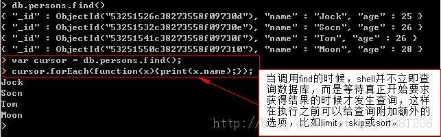 游标是很有用的东西,MongoDB数据库使用游标来返回find的执行结果。客户端使用游标可以对最终结果进行有效的控制,比如分页,排序。