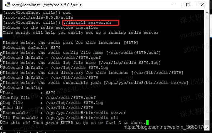 13,进入到utils目录,执行./install_server.sh,,然后回车,默认会选择端口6379,,继续回车,选择默认选项。