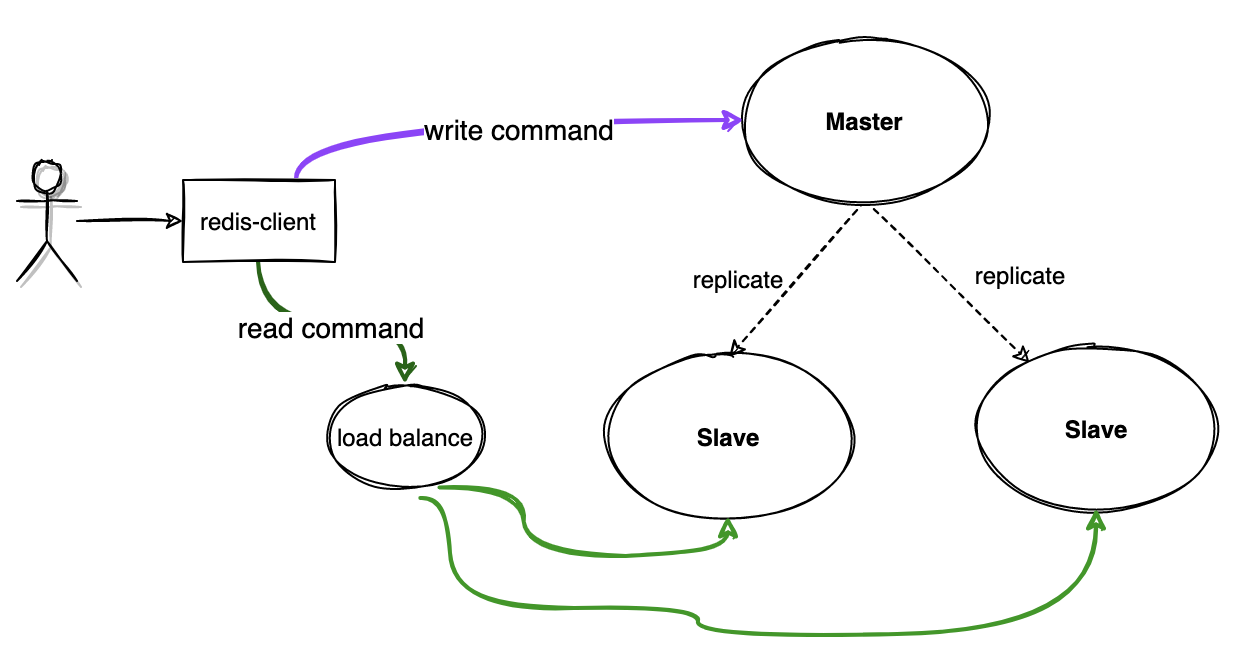 (2) 将命令进行分类:执行写命令则从 master的连接池取连接然后执行,如果是读命令则从slave的连接池中取出连接执行