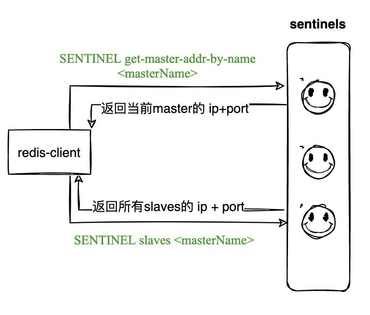 那就不能从配置文件取master和slaves的 ip+port 了,得从redis ha的组件去动态获取 当前master 和可用slave列表的节点信息 => sentinel