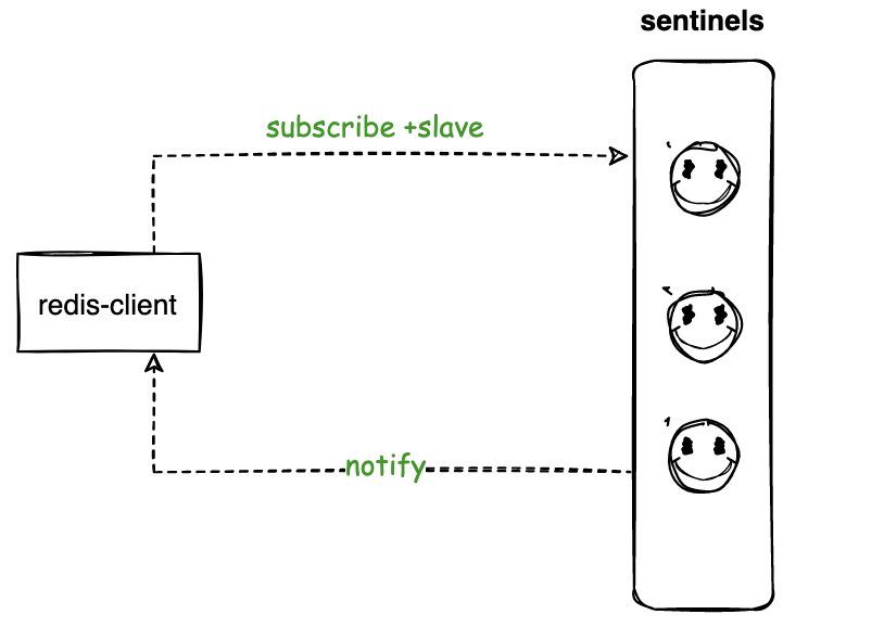 当 sentinel 进行master failover切换的时候,它会向channel: switch-master 发送通知,我们在客户端订阅这个channel,收到事件后,重新进行初始化的步骤即可