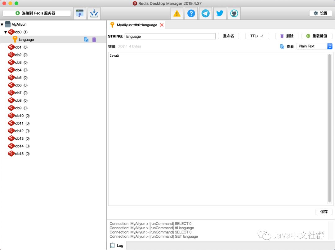 下面在控制台里面用redis命令添加一个key: