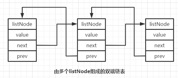 struct listNode *prev; //指向前一个链表节点