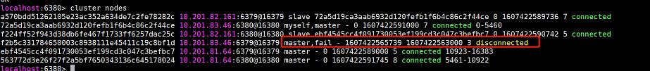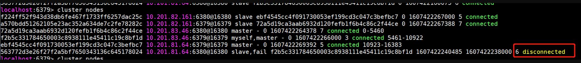 此时查看集群的节点状态如下,可以看到槽 5461-10922在这个主节点上,此时整个reidis集群处于不可用状态