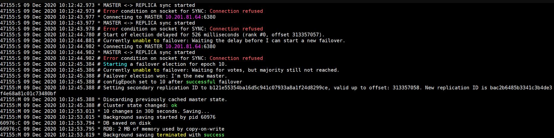 10:12:45:选举成功胜出,成为了新的主节点,整个集群的状态变为可用