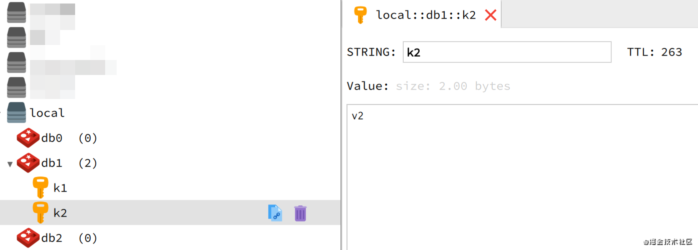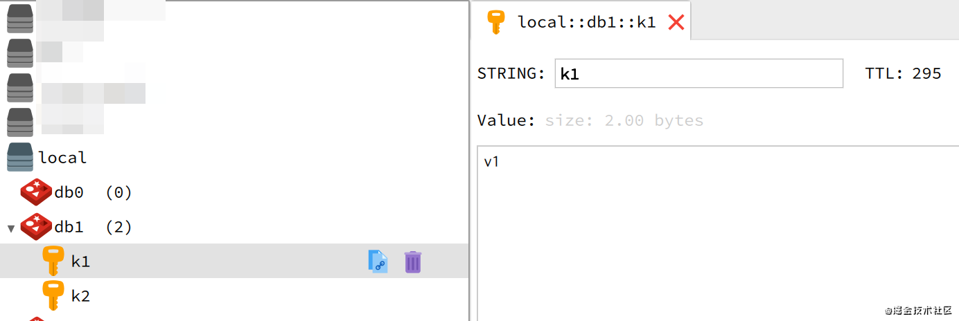 分别看下 k1、k2 的值(使用工具:RDM, Redis Desktop Manager):