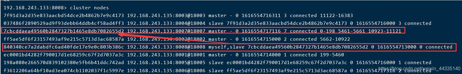 192.168.243.133:8008> cluster replicate 7cbcddaea49560b2847327b1465e8db7082655d2 OK