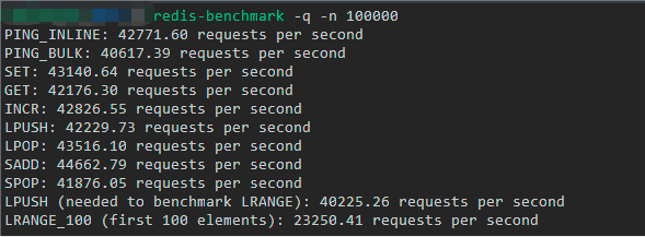 下图就是我这边执行第一条命令的自测结果,可以看到大部分命令的吞吐量都可以达到 4 万以上,也就是说每秒钟可以处理 4 万次以上请求: