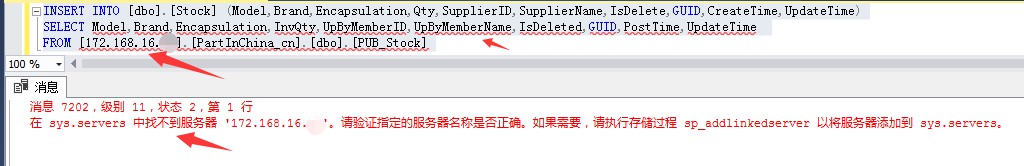 源头数据库:[172.168.16.].[PartInChina_cn].[dbo].[PUB_Stock]