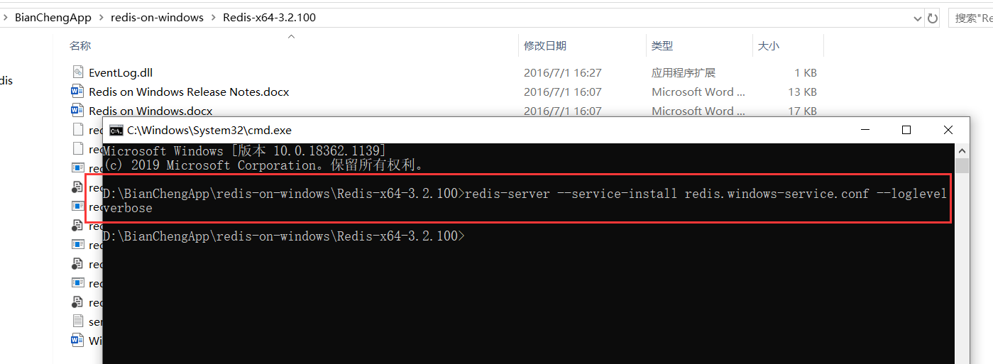 redis-server –service-install redis.windows-service.conf –loglevel verbose