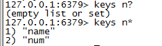 获取所有与pattern匹配的key: keys pattern 。 * 匹配一个或多个,?匹配一个